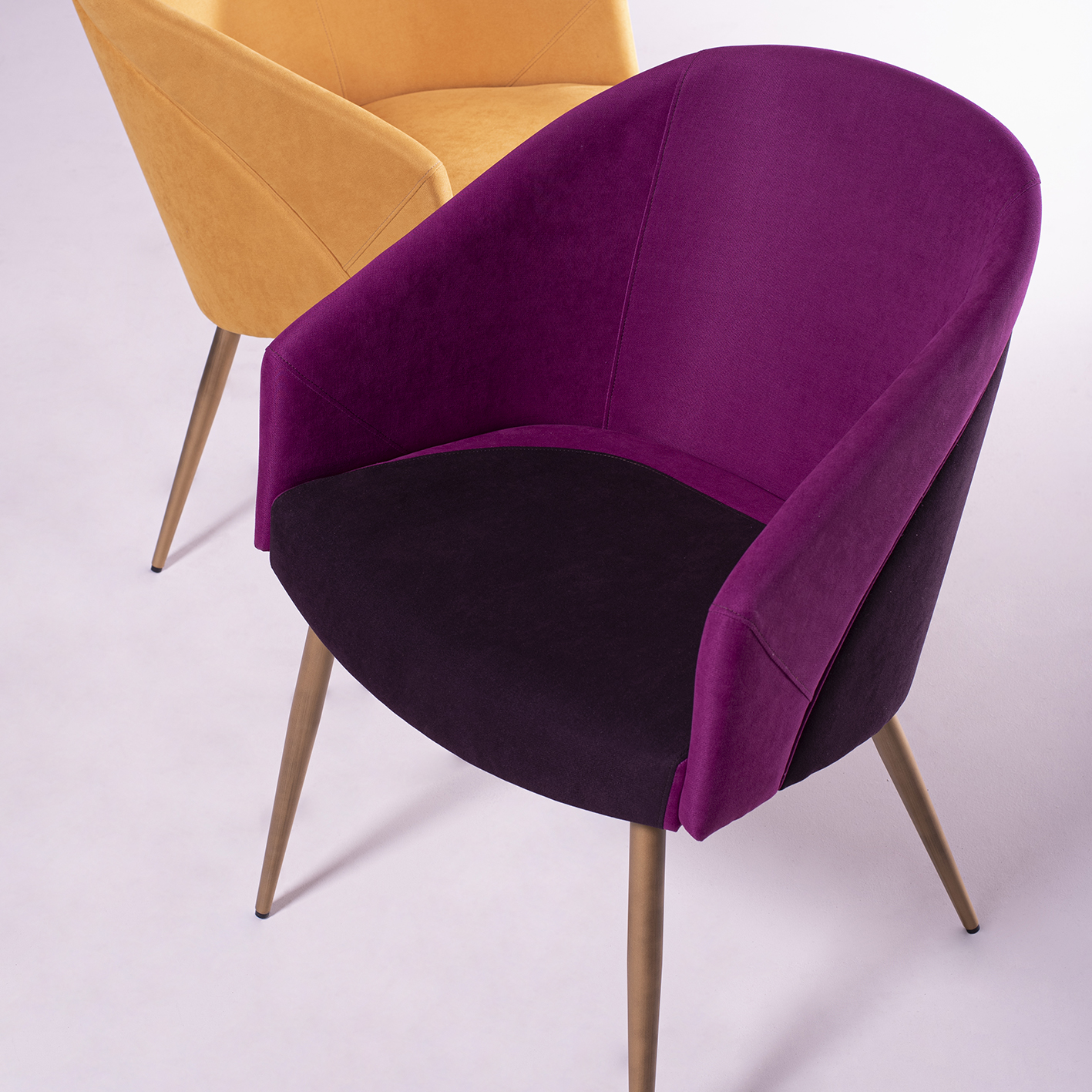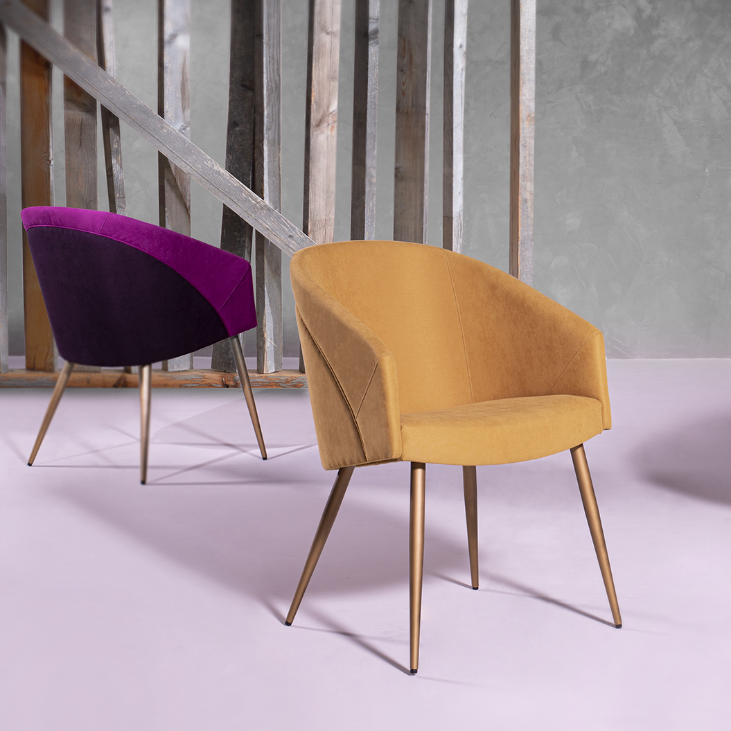 Fresh, sparkling and determined, Cougar armchair combines a seat with warm enveloping shapes with a metal frame available in two versions. An essential and welcoming design, perfect for bars and restaurants.