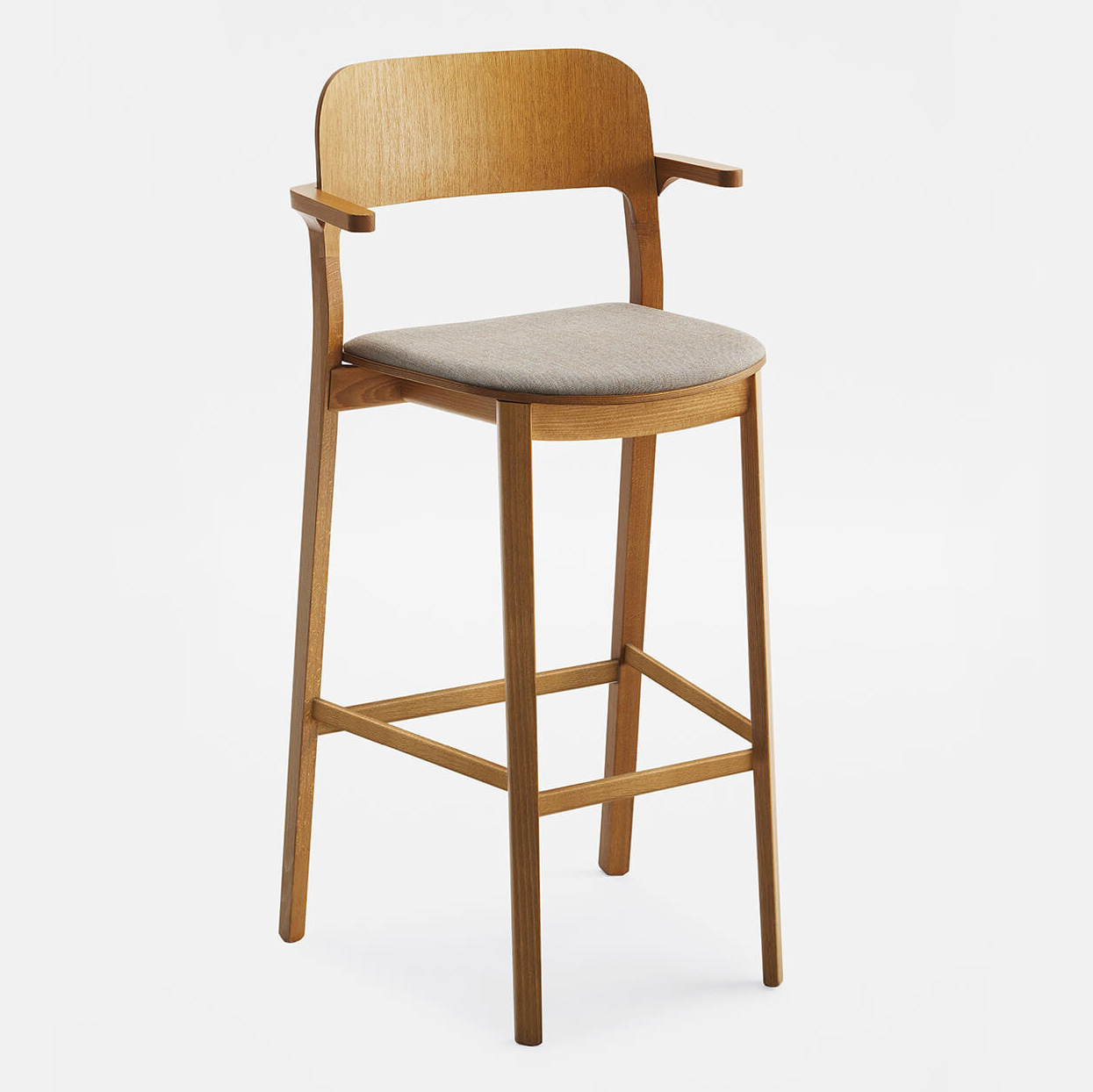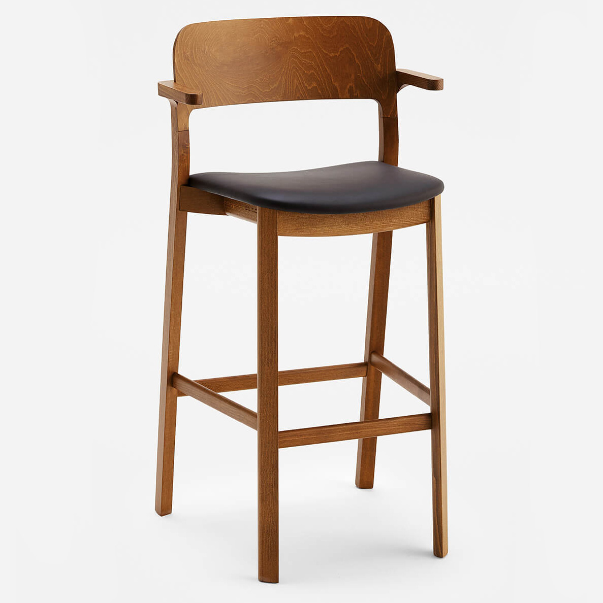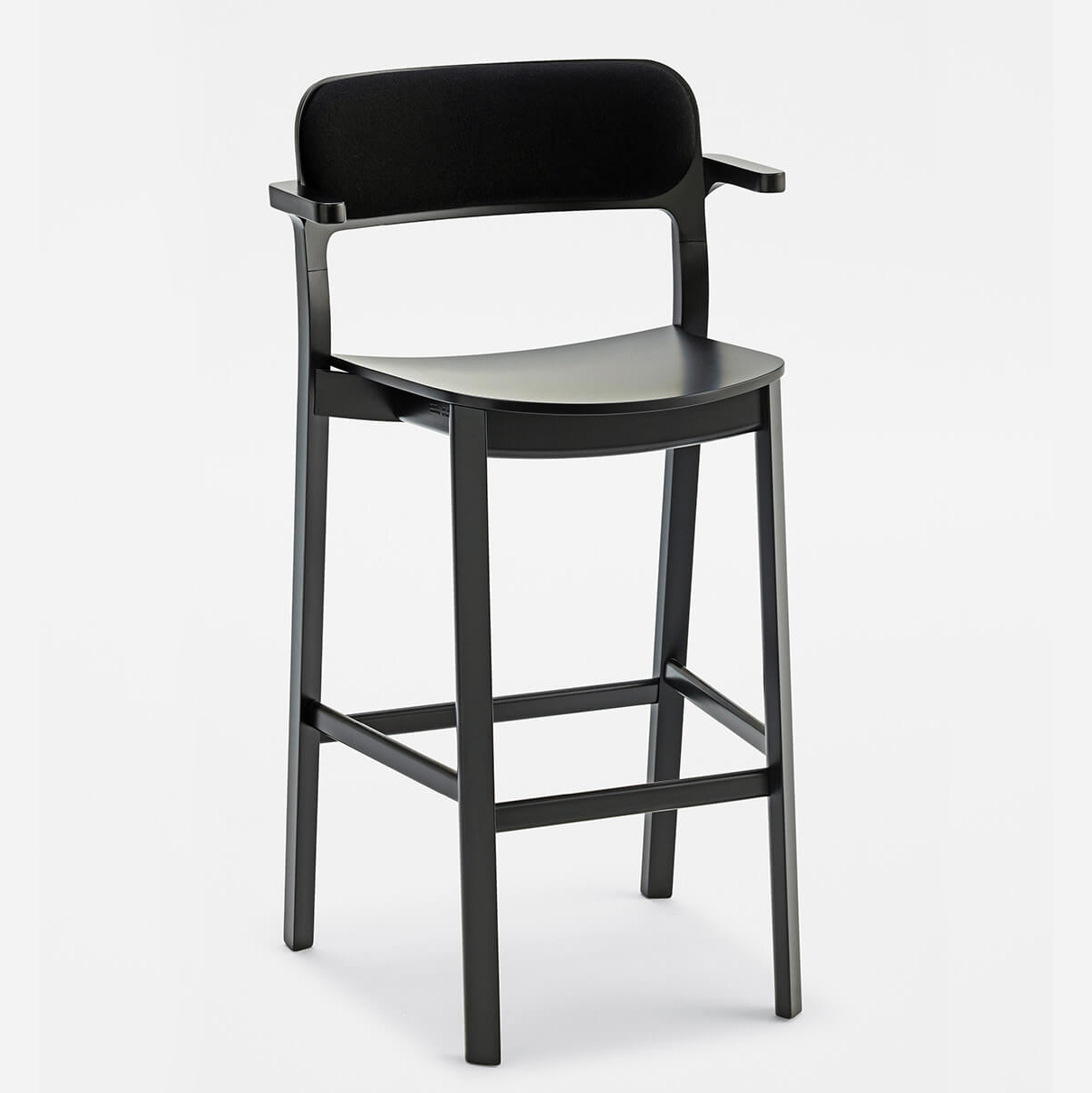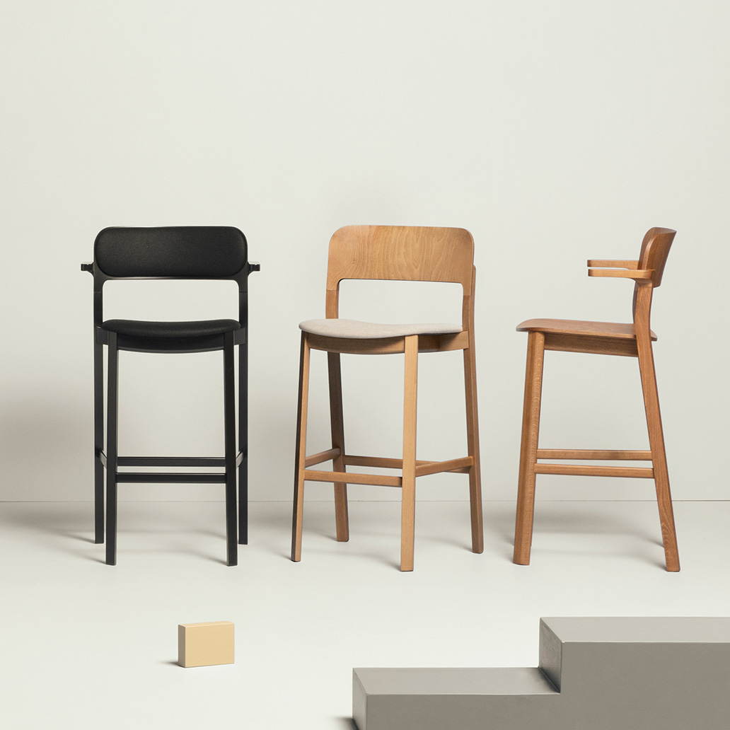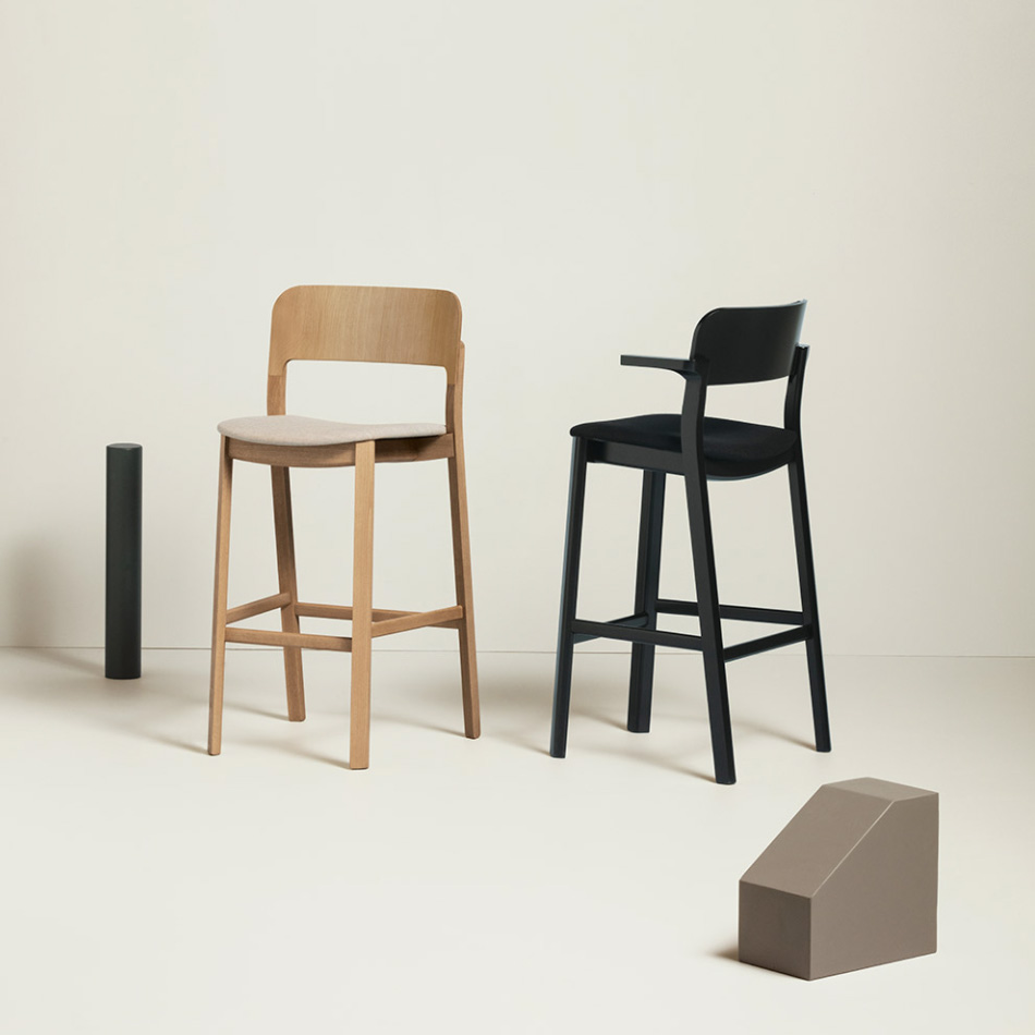 Hart adapts to different combinations of colours and finishes. Stackable chair and armchair are available in wood or with upholstered seat and back.